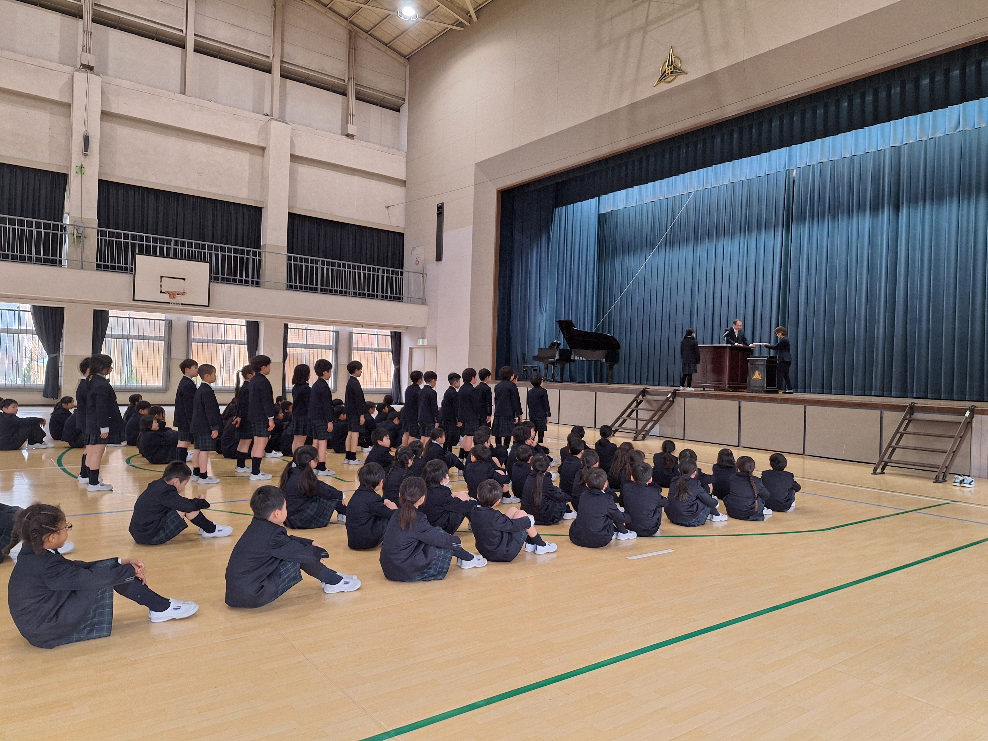 今日は、朝一番に修了式が行われ、校長先生のお話の中で、児童全員が1年間を振り返りました。