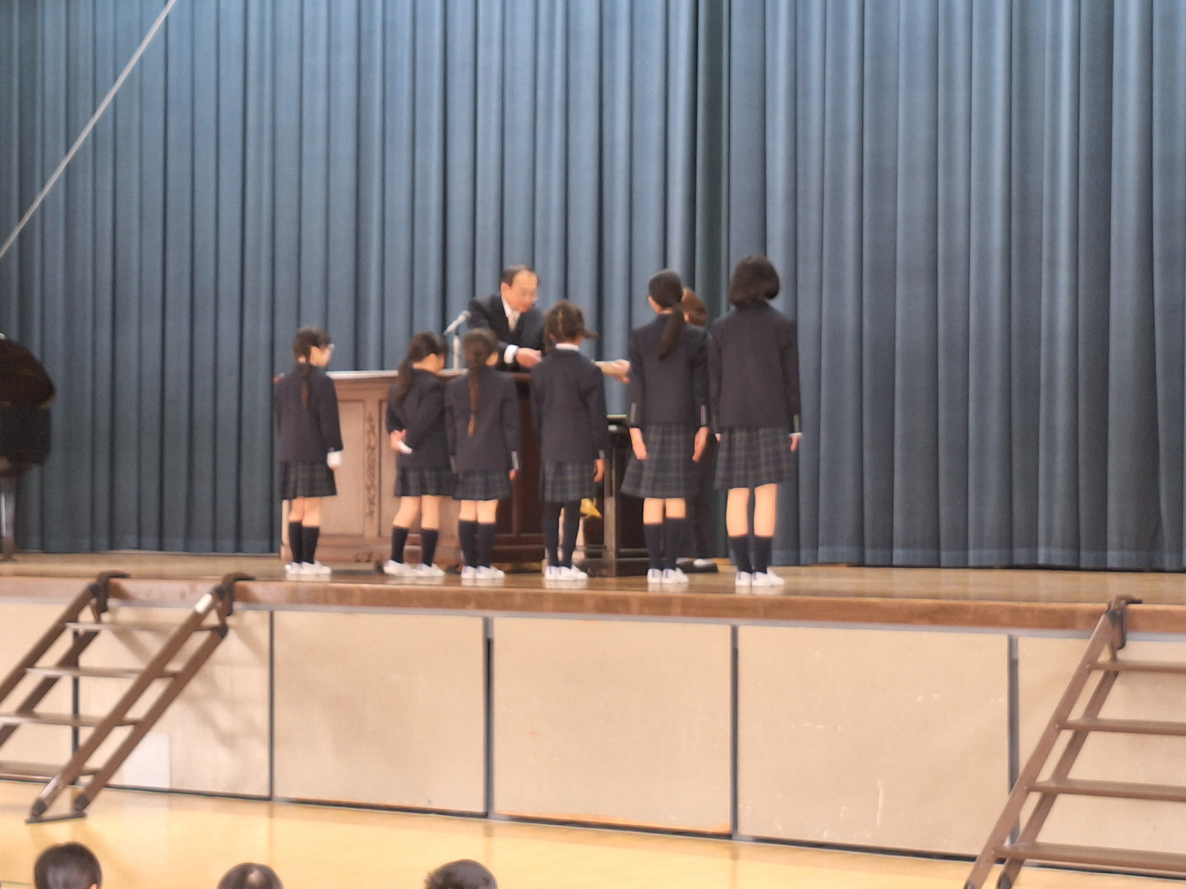 一人一人、名前を呼ばれて壇上に上がり、校長先生から賞状を受け取る顔は、いつもとは違い緊張が伝わりましたが、とても嬉しそうでした。