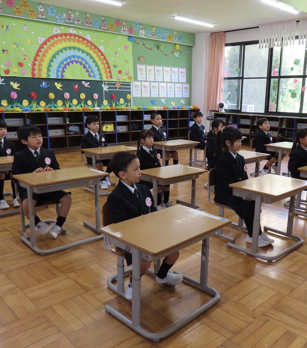1年生の教室を覗くと、緊張した様子の子どもたちがお行儀よく椅子に座っていました。
