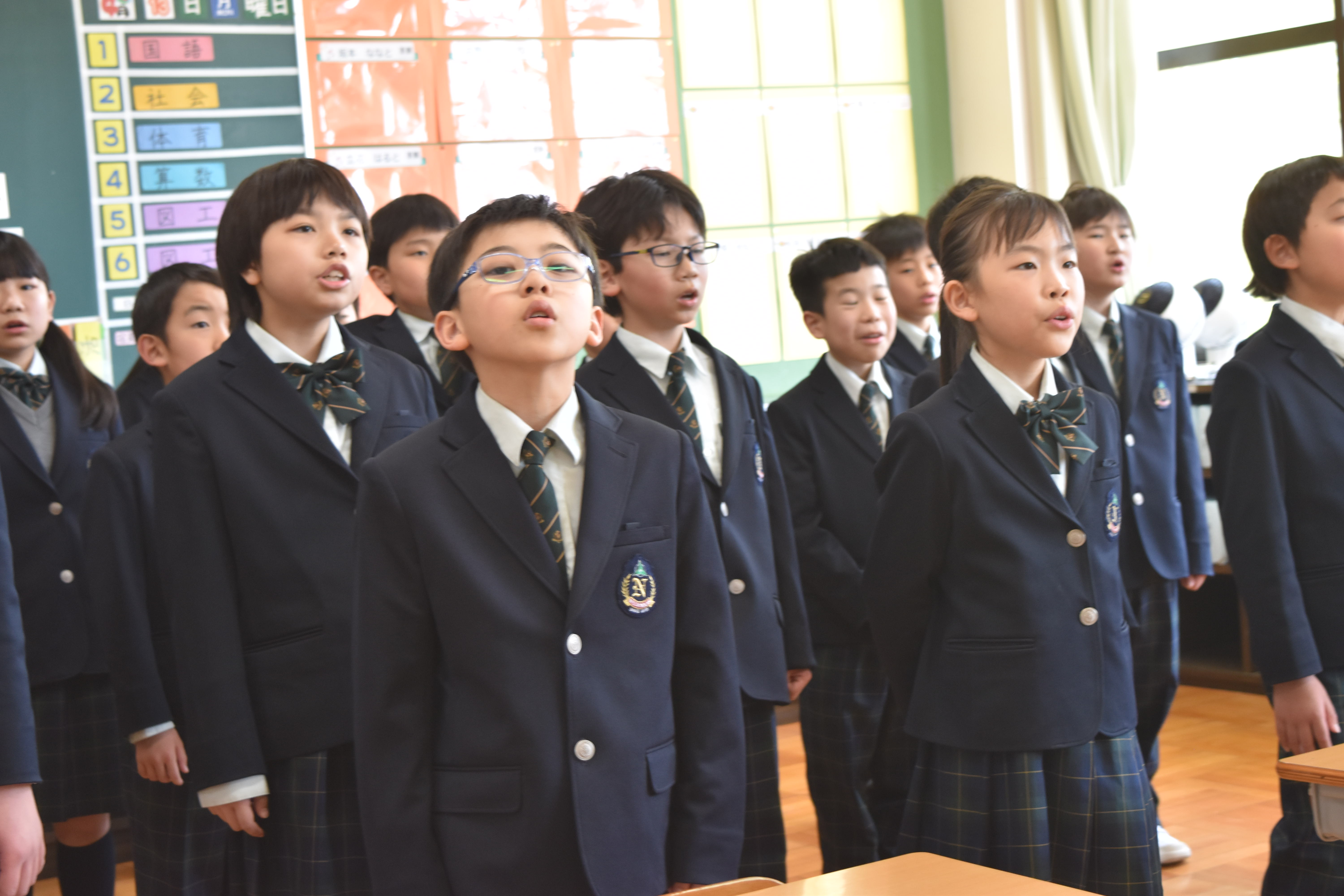 6年生が係の仕事で忙しく働いている間、4・5年生は教室で最後の歌の練習。